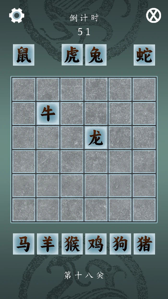 这是一款专为玩家打造的休闲小游戏,将传统文化与接龙玩法巧妙结合,核心玩法全程围绕十二生肖展开,玩家需要将一块块对应生肖的拼图拼接成更长的龙形图案。每一块拼图都对应十二生肖里的一种动物,这些动物造型可爱生动,栩栩如生,拼接过程还能锻炼玩家的观察力。
