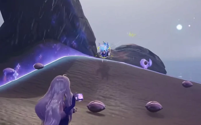 闪光天星骑士是水属性BOSS,周身被浓厚的水元素笼罩,通常栖息在水源充沛的区域,大家可以去这类地方搜寻它,只要靠近就能触发对战。战斗中,它会召唤海水辅助进攻,其中一个标志性技能是召唤蓝色水环围绕自身,一旦玩家靠近,水环就会向四周喷射,命中后会造成大量水属性伤害,近距离的话还会被击退。所以一旦看到它召唤出水环,一定要立刻拉开距离,远离当前位置。