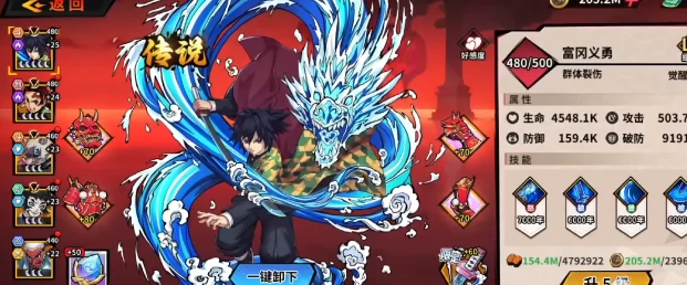 原作里他救下豆子,顶住所有非议成为引路人,作为挥舞水之呼吸的守护者,能利落斩灭恶鬼。到了游戏世界中,这份源自水柱的坚韧被刻画得淋漓尽致,他是实打实的高星核心角色,技能设定完全复刻了原作精髓。普攻干净利落,刀光扫过就能成片收割敌人