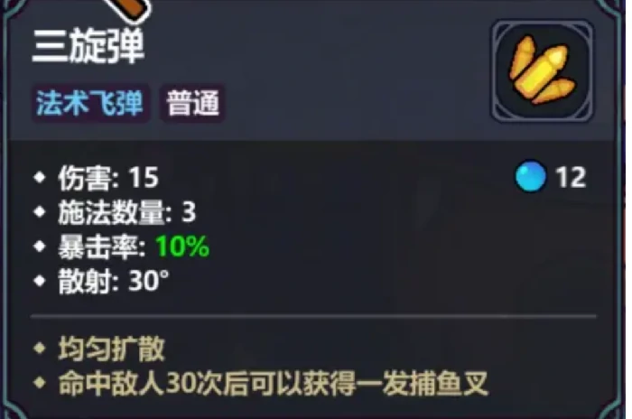 实战里的小技巧也不能忽略,战斗开始后先靠三旋弹快速攒满能量,再切换捕鱼叉打出爆发伤害。当火焰鱼叉的加成叠到最高时,火伤能达到玩家生命值上限的4%,这个属性在高难度关卡,尤其是BOSS战里能起到关键性作用。