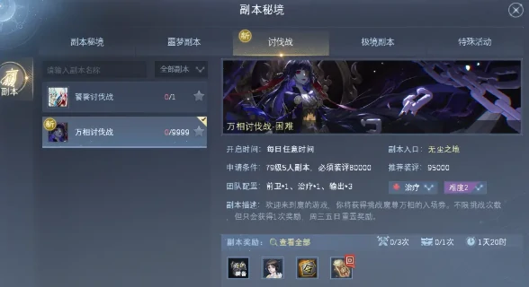 想要开启二难度挑战,少侠得先达成几个前置条件:等级要达到79级,装备基础评分得有8万以上,而且必须先通关一难度。而解锁一难度的核心是完成万象守魂战,你可以跟着主线剧情推进解锁,也能直接去九鼎城的九华台找NPC接取相关任务,两种方式任选其一。进入副本后,一定要牢牢把控核心战斗节奏,当系统提示敌人进入气绝状态时,就意味着万象进入破防阶段,这接下来的操作可是重中之重