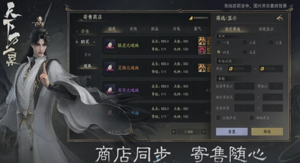 核心交易场景设在万象商城,这里分为玩家寄售区和官方直供区两大板块。修炼必需的灵魂结晶、玄钢石等基础材料,以及定期投放的技能道具,都能在这里找到;你也可以在寄售区选购其他玩家上架的商品,选择十分灵活。交易货币采用双轨制设计:铜板作为通用货币,完成日常任务、刷副本就能稳定获取;元宝保留了部分充值渠道,但新增了免费获取途径,通关天机塔高难度关卡就能拿到。靠着这些机制,平民玩家也能攒够货币兑换王朝包裹。
