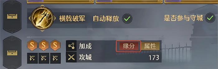 确认缘分是否激活也很简单,在编队界面选好武将后,留意界面下方的S图标旁,会有“缘分”标识。只要选了同阵营武将,通过这个缘分图标就能快速判断是否激活。比如选用吕布、貂蝉、吕玲绮三人,就能激活“天下无双”缘分,主要提升队伍的暴击率。