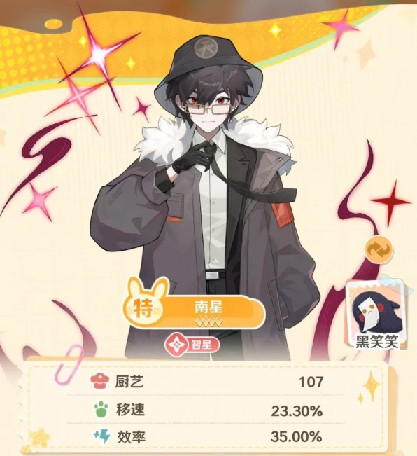 南星的核心价值,主要体现在他的中后期技能上。宇宙小爆发会在店铺入座率达到80%时触发,为他自身提供高额的移速与效率加成,且持续时间较长,在营业高峰期能快速缓解出餐压力,避免因餐品供应不足导致店铺评分下滑。而厨艺交响则能直接为全体店员提供固定数值的厨艺加成,在大型活动或是高难度经营挑战中,效果会格外显著。除此之外,在超级厨王秀、商务聚会这类玩法里,针对智星特质店员的专项强化机制,也让南星在特定阵容中拥有不可替代的地位。