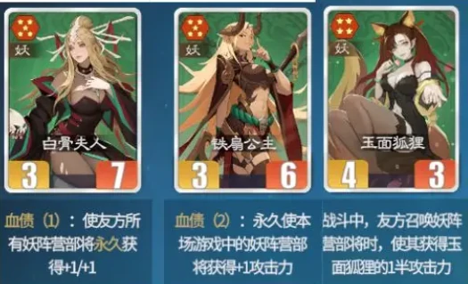 接下来要介绍的是妖族阵营的多核心召唤流阵容,可选卡牌包含牛魔王、铁扇公主、石矶娘娘、白象精、玉面狐狸和白素贞。这套阵容没有单一核心位,而是依靠多角色联动发挥战力,大部分卡牌都具备召唤能力。比如石矶娘娘,处于不屈状态时,她的召唤物可以承担大量敌方伤害,且凭借免死机制,能持续刷新输出指向敌方目标,就算面对敌方强力前排也能从容应对。