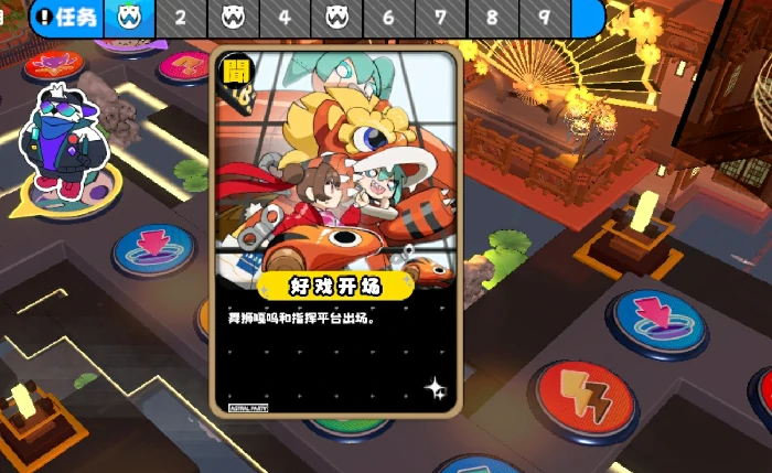 通关水乡古镇的核心思路是尽可能多击倒爆竹呱呱获取高升炮,用它来清除氛围机器人和舞狮嘎呜的叠层,保证自己和队友能顺利和怪物作战。如果行动顺序允许,建议让第一个行动的玩家使用高升炮来完成这个操作,这样后续行动的玩家都能享受到叠层清除后的效果,避免伤害浪费。与此同时,要多使用手牌或技能攻击指挥平台,利用它的机制以及和舞狮嘎呜共享生命值的特点,来削减两个BOSS的血量,玩家也可以在商店多购买一些伤害较高的手牌,专门用来攻击指挥平台。