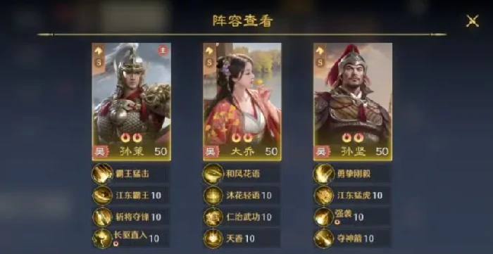 搭配毒神剑这类技能后,阵容输出强度能再上一个台阶。用这套阵容推主线,可以把能拿的资源和奖励全部收入囊中,而且前期有大乔当奶妈,也不用愁没好用的辅助。确定主力队后,尽量选带3S属性加成的组合——30%的属性提升非常显著。阵容搭配上建议走“双输出+单辅助”的路线,强度会更高;要是选双辅助加单输出,前期可能会战力不足。后期如果抽到刘备,直接转桃园队当主力;抽到曹操的话,可以搭配关羽和张飞;抽到典韦的话,和许褚是固定的强势组合,直接组队就行。