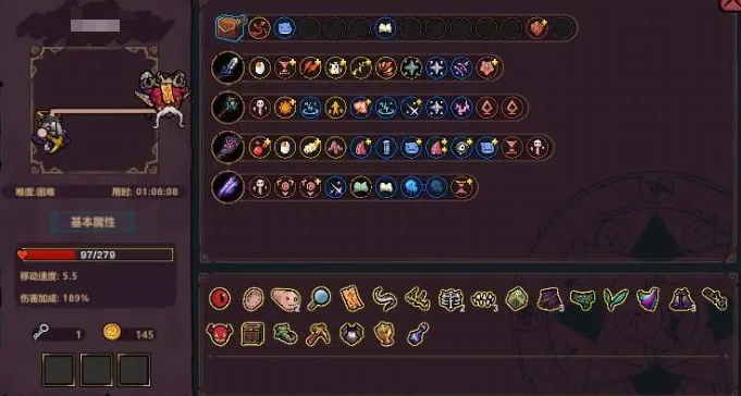 遗物选择上,前期优先选带成长效果的,这类遗物能通过后续的操作和搭配,持续提升伤害,比如初期的淘金者手套就很合适。中后期可以换恶魔之眼、狂暴之眼这类能大幅提伤的遗物,毕竟中期怪物强度已经上升,不过堆伤害的同时,也要兼顾容错率,靠装备效果保证后期的生存能力。
