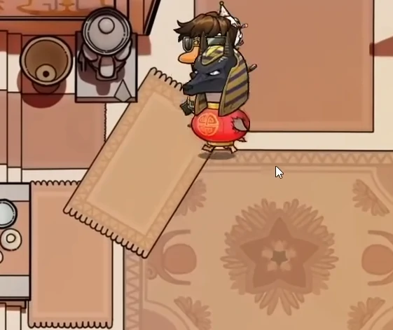 第一项实用技巧是「视觉遮挡藏尸法」。当鸭子阵营完成击杀后,尸体暴露会直接触发警报投票。这时如果穿戴体积偏大的服饰,比如宽檐帽、蓬松围巾或是巨型背包,且头部装饰直径接近场景中常见灯笼尺寸,就能在昏暗区域实施遮挡操作:击杀完成后立刻站到尸体正下方的垂直投影点。由于游戏采用固定视角与基础碰撞判定,这个站位能完全覆盖尸体模型,静止状态下无位移痕迹,其他玩家从常规路径视角观察根本发现不了异常。需要注意两个硬性限制:其一,狭窄竖向通道禁用该技巧,比如通风管入口、电梯井旁,否则上方格子经过的玩家俯视下来会直接揭露破绽;其二,遮挡仅为临时手段,必须同步推进后续动作——比如主动发起紧急会议转移众人焦点,或是提前规划拖尸动线,避免因长时间滞留引发行为逻辑矛盾。