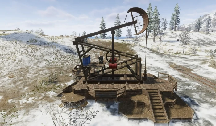 游戏地图里分布着不同类型的矿场,每个矿场旁都配有专属的挖掘设备。硫磺矿场对应硫磺挖机,采石矿场有石料挖机,高级金属矿场则配备了金属挖机。除了这些常规矿场,像发电站、污水处理厂这类中型据点也放置了挖油机。这些设备有个共同特点:都得消耗柴油才能运转。玩家只要往机器里加入柴油,它就会自动开始工作,持续产出对应的资源。