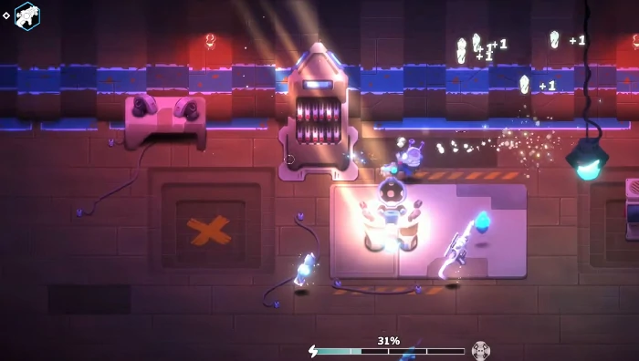 前期给机器人搭配芯片和武器时,要提前考虑后期的职业发展路线。对战中会随机遇到不同功能的房间:箱子房能开出各类道具;技能点房会提供技能点,需要大家根据当前发展方向选择提升的技能;空房间无需停留,直接通过即可;地雷房则可以利用地雷的布局来批量消灭敌人。