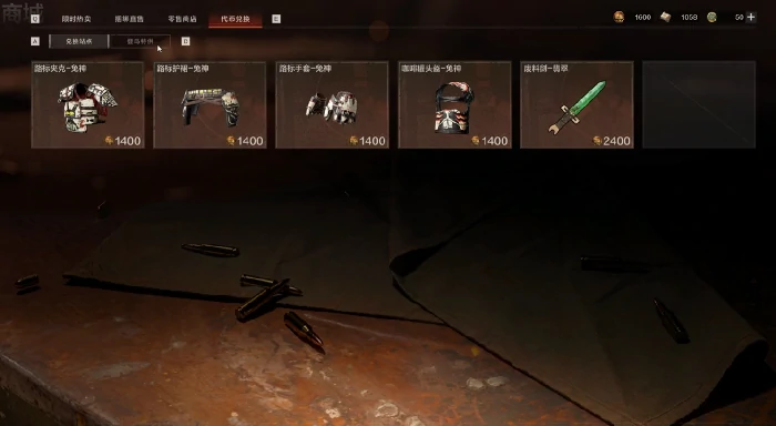 其次是代币兑换商店,这里主打兔神系列外观,玩家可以兑换的物品一共有5件,分别是路标夹克、路标护裙、路标手套、咖啡罐头盔以及废料剑皮肤。兑换所需代币也有明确要求:废料剑需要2400代币,其余四件均为1400代币就能入手。
