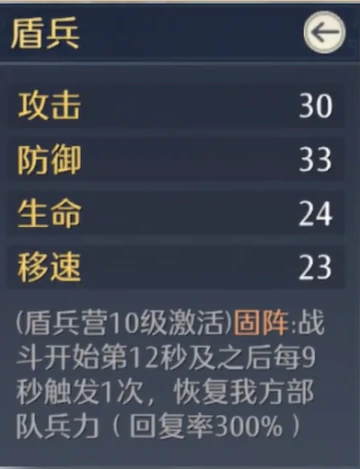 骑兵是全兵种里移速最快的,追击残敌或者发动偷袭都堪称利器。升级骑兵营后可解锁速攻效果,冲锋的爆发力会更强。实战中,骑兵常被用来直插敌方后排,或者截断对方的补给路线,打乱敌方部署。盾兵的防御属性拉满,但移动速度是硬伤,慢得很。升级盾兵营能激活固阵效果,防御能力会更扎实,守住前线主要靠他们。打持久战的时候,盾兵的减伤能力能让整个部队的伤亡大幅降低。