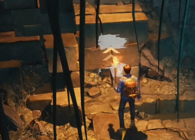 在调查左耳室的过程中,存在误触机关的风险,一旦触发机关,左耳室的入口就会立刻封闭。这时需要在限定的区域内寻找出口路径,并且依次破解三处基础机关装置。这段解谜的难度不高,完成所有交互操作后,角色会坠入下方空间,正式和王胖子、吴邪两位核心角色汇合。
