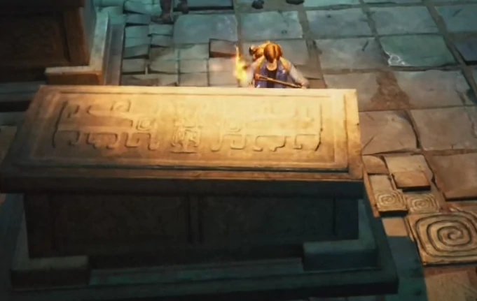 想要触发关键剧情,核心操作就是开启位于棺椁阵列顶端的那具棺材。完成推动开启的动作后,系统会自动播放过场动画,随后进入战斗环节。战斗结束后,角色会向前方区域移动,这时一定要主动去调查左耳室区域。这个空间里分布着好几组可交互的物资点,是前期积累资源的重要地方。