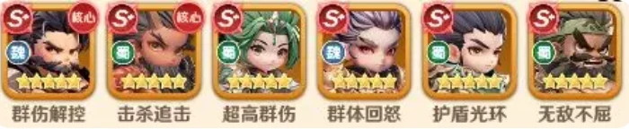 最后一套是蜀国阵营队:诸葛亮、张飞、黄月英、关羽、赵云、刘备。这套阵容的核心是高频追击与秒杀收割,张飞作为前排扛伤位,靠武力盾承担敌方主要火力;黄月英的群攻技能能附带沉默效果,还能削减敌方怒气,让敌方无法快速释放大招,给我方创造先手压制的机会。赵云和关羽都自带追击机制,配合起来能快速收割残血目标;刘备的阵营光环能给全队提供属性增益,诸葛亮则是全队的输出上限保障——他的真实伤害能无视敌方防御,同时提供的回怒效果,能让队友更快触发技能,加速战场收割节奏。