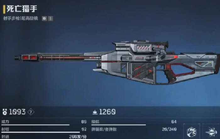 第二款推荐的是死亡猎手,它是目前步枪里穿透能力最顶尖的存在。开启急速狂热技能后,自身会进入强化状态,期间能量条持续支撑增益效果,全力输出不会消耗子弹,射速也会大幅提升,直到能量耗尽为止。被动效果强力弹压还能进一步强化子弹的穿透属性,即便是穿透6层目标也不会有伤害衰减,当技能命中5个及以上敌人时,还能获得10%的子弹伤害加成。
