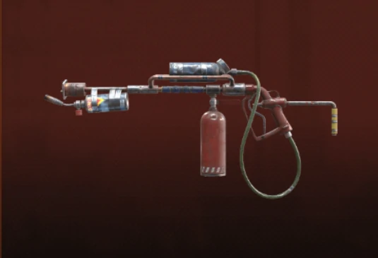 第三个登场的是火焰喷射器,它属于低消耗型武器,依赖燃油才能喷射火焰,既能造成大范围灼烧伤害,还附带减速效果,对付木质建筑时,破坏效果堪称碾压级。它使用的是低阶燃油,这类资源在搜集过程中很容易获取。虽然它的射速不算快,但弹药容量高达100发,近战压制力拉满,而且后坐力极低,实战中建议边移动边射击,能发挥最大效果。
