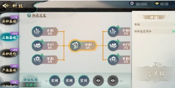 主城与太学院能带来极高的属性加成,太学院的等级上限与主城挂钩,这里的科技研究对全方面战力提升至关重要。比如研究屯田令相关科技后,所有资源建筑的产量都会提升;点亮八阵图科技,阵容整体控制能力会迎来质的飞跃,这些科技点千万别闲置,得优先规划研究