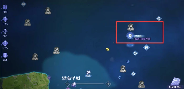 刚抵达望海城,先找到带有蓝白菱形加翅膀标识的传送点,点击就能完成快速移动。传送完成后,留意角色身边的光圈,光圈附近会有应急食物箱,打开它就能获得餐食,每份餐食能提升40点饱食度。这类物资建议多囤积一些,饱食度充足后,角色才能顺畅执行各类行动。