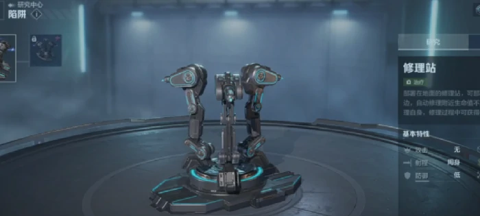 除了各类陷阱,修理站也是塔防玩法里的关键设施。初始就能解锁的修理站可以恢复角色生命值,只是初期修复速度较慢,随着你实力提升,修理站的修复效率也会逐渐变高。