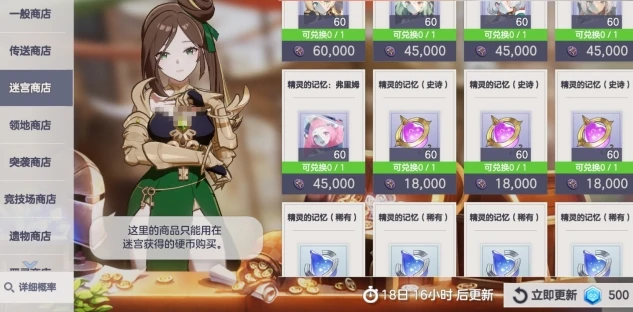 迷宫商店用的是迷宫硬币,最该优先兑换的是指定史诗精灵记忆,攒齐碎片就能稳定拿到目标精灵,实用性拉满。要是硬币还有富余,可以考虑换随机史诗精灵记忆,其他性价比太低的道具直接忽略就行。领地商店的领地硬币产量挺可观的,不用省着花。先换永恒花或者高级抽奖扭蛋,这俩道具能实打实提升战力,换完之后再考虑兑换领地建筑。