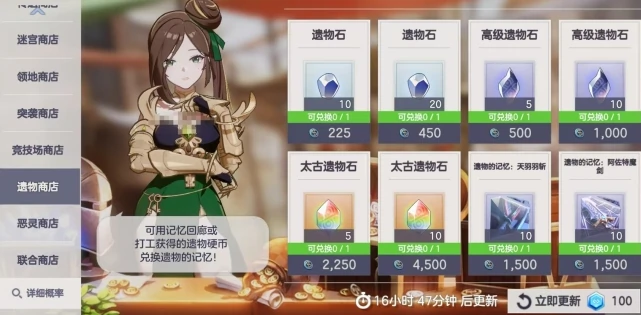 突袭硬币比较稀缺,兑换时得精准下手,只换永恒级化妆品套装,换完之后要是还有剩余,就等商品刷新再换。史诗级的化妆品套装完全没必要入手,属性和价值都差不少。竞技场商店的竞技场硬币,优先换指定史诗精灵记忆,能精准补强你的阵容;硬币有富余的话,再换史诗精灵记忆或者太古遗物石。遗物商店用迷宫产出的硬币兑换;恶灵商店的硬币很珍贵,得通过恶灵讨伐获取;最后是联合商店,用联合作战任务给的纪念币就能兑换道具。