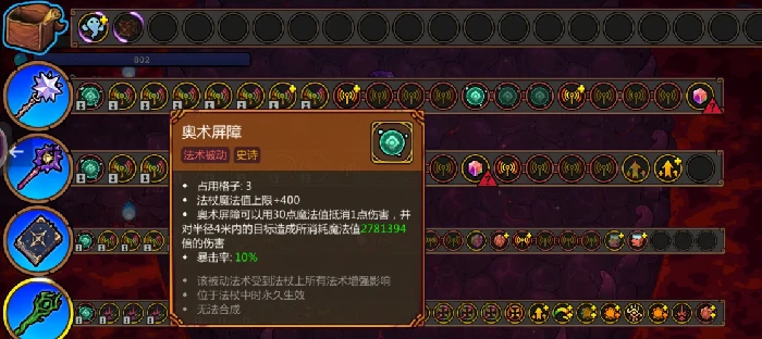 最后是特效连锁流,核心组合是闪电链+蝴蝶神器,靠多分裂、多重施法触发连锁伤害。当闪电弧在敌人之间跳跃时,能打出极强的连锁伤害。闪电链和雷霆核心需要在游戏前期就开始积累,蝴蝶神器则是这个流派的核心关键。再搭配奥术屏障、火焰强化等技能,还能进一步提升伤害——只要敌人出现扎堆的情况,用这个流派就能打出极具爆发力的清场效果。