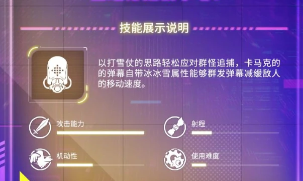 对于偏爱战术玩法的玩家来说,卡马克的操作门槛很友好,同时又不失玩法深度。不需要复杂的连招技巧,只要抓准技能释放时机和走位节奏,就能发挥出强大战力。新手玩家可以先从冻结加基础射击的组合练起,熟悉技能机制后,再尝试减速拉扯、区域封锁这类高阶玩法。卡马克在不同战斗场景里的适应性也很强,初期清理普通关卡时,他的冰霜技能能快速清剿小怪;面对精英敌人时,冻结和减速效果可以限制敌人的攻击速度与移动能力,方便我们寻找输出窗口。