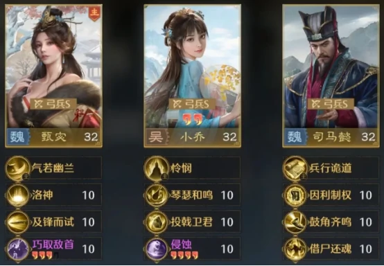 小乔则是阵容里的关键辅助,她的核心技能琴瑟和鸣能在回合开始时稳定全队的怒气供给。除了这个技能,小乔还有多个回怒效果,搭配甄宓与司马懿时,能让全队技能释放频率大幅提升,让对手根本来不及反应,始终处于被动挨打的局面。