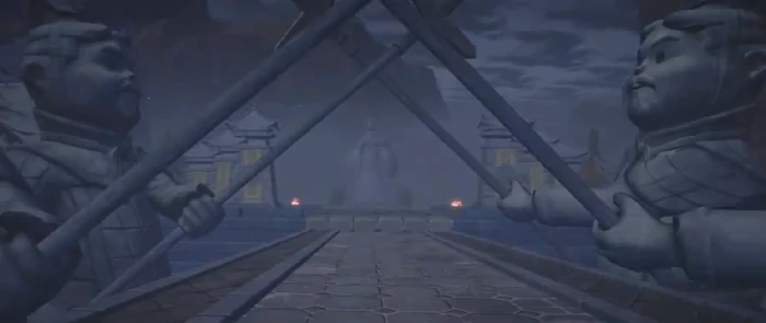 地图里还原了早已失传的机关兵俑体系,玩家不光能近距离观赏气势恢宏的兵俑阵列,还能通过交互指令进入兵俑内部,完成「人俑合一」的战术操作:在内部安全舱里,你可以自由转动兵俑躯体、锁定目标后发动范围攻击,高效清理地图里的各类异常生物。