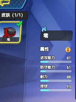 满级状态下,零的核心属性提升很明显:进攻能力有87点,控球能力更是高达93点。这两项数值在N级角色里已经是顶尖水平,快摸到这个品质的理论上限了。不过只看数值还没法判断它的实战价值,技能设计才是决定它功能和泛用性的核心。