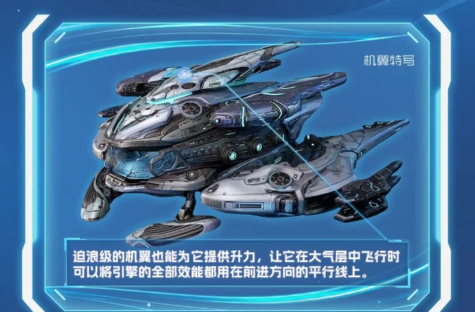 迫浪级采用一体化舰桥设计,舰桥在船体中占比很小,虽然不够突出,但防护性极强。不过这种设计也会限制舰桥内的直接视野,好在它搭载了高性能的灵活传感器,即便视野受限,也能全方位掌控战场态势。另外,舰体两侧的机翼能让它在飞行时保持平稳,轻松进入最佳气动状态,进一步提升机动表现。