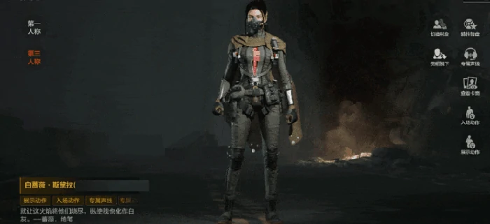 该角色拥有独立入场动画:披风向后展开,紧接着完成装备穿戴动作,还会迅速将长发束起;若选择隐藏装备模式,则手持白蔷薇缓步登场。除此之外,套装还配备专属语音系统、精细化手部模型,以及标志性交互动作——取出半张泛黄旧照片,进一步强化角色背景的沉浸感。