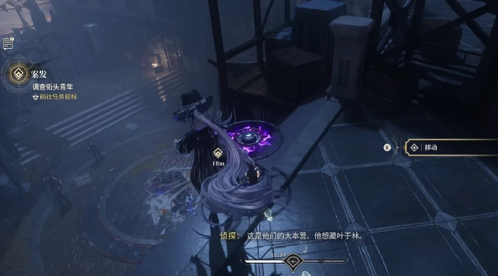 这个系列任务需要先触发“案发”前置——完成该前置后,系统才会解锁警局相关的剧情线。任务启动时,会出现一名形迹可疑的青年,大家得立刻展开追踪。这里推荐用钩锁来快速位移,同时别漏看地面上的脚印线索,保证追踪的路径不会断。跟着线索最终能找到一处隐蔽的据点,而目标就藏在这伙街头混混的聚集地里面。