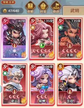 阵容搭配上,张辽和司马懿有着明显的协同作用:司马懿凭借减益技能持续压低敌方整体血线,张辽则利用自身的群体斩杀机制完成高效收割,二者配合能大幅提升队伍的击杀效率。除此之外,搭配曹操、郭嘉这类怒气回复型辅助武将,能显著提升张辽的技能释放频率,保持高强度的输出节奏,让他在中后期的PVE推图与PVP对抗中都能稳定担任主C发挥实力。