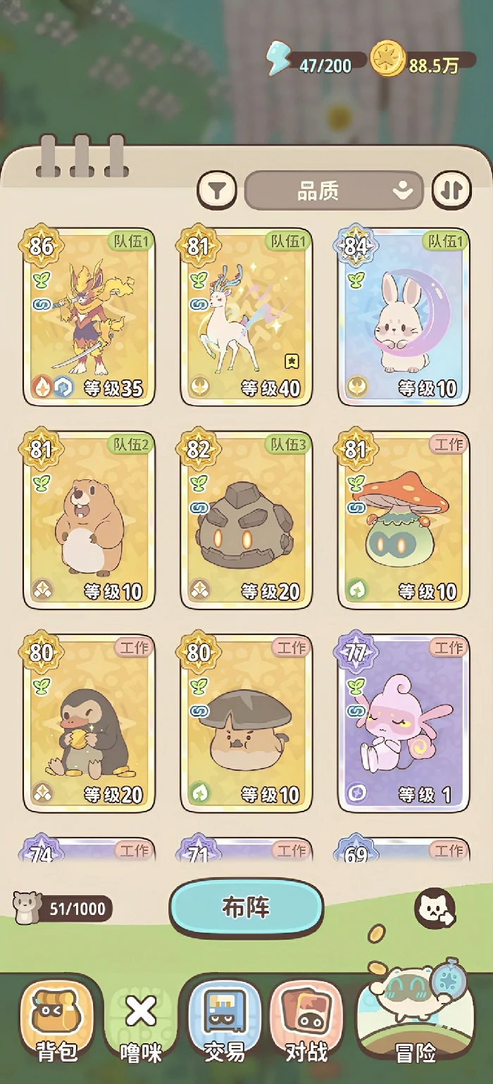 除了农事劳作,工作噜咪还能承担多项基建与资源生产任务:进入森林区域自主伐木,用于扩建房屋、升级工坊;驻守制造台批量产出捕宠道具与生存补给;甚至可以参与特殊事件的物资筹备。这种多线程协同的运作模式,保障了探索进程的可持续性——玩家总能拥有充足资源应对未知挑战,稳步扩充噜咪图鉴。此外,所有宠物都支持培育与进化,随着成长还会解锁差异化的能力与外观特征,进一步强化了个体价值与长期陪伴感。