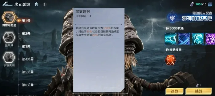 战斗准备界面的右侧,专门设置了BOSS技能详情面板,上面清晰展示了BOSS的技能类型、释放规律、属性抗性以及核心机制。掌握这些信息是制定有效应对策略的关键,比如面对高防御BOSS时,就得搭配主打破防增伤的阵容;而对付高速突袭类BOSS,更依赖控制链的衔接和闪避操作的配合。