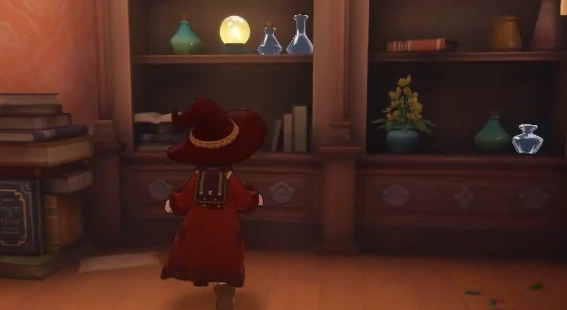 这里要特别提醒大家:书架顶层藏着三枚游戏币作为额外彩蛋奖励,千万别漏掉。最终需要收集两颗黄色水晶球、两颗蓝色水晶球和两颗红色水晶球,总共六颗,把它们全部运送到场景前方的炼金锅处,按照颜色分类投入对应的槽位里,就能激活全部奖励的结算界面了。
