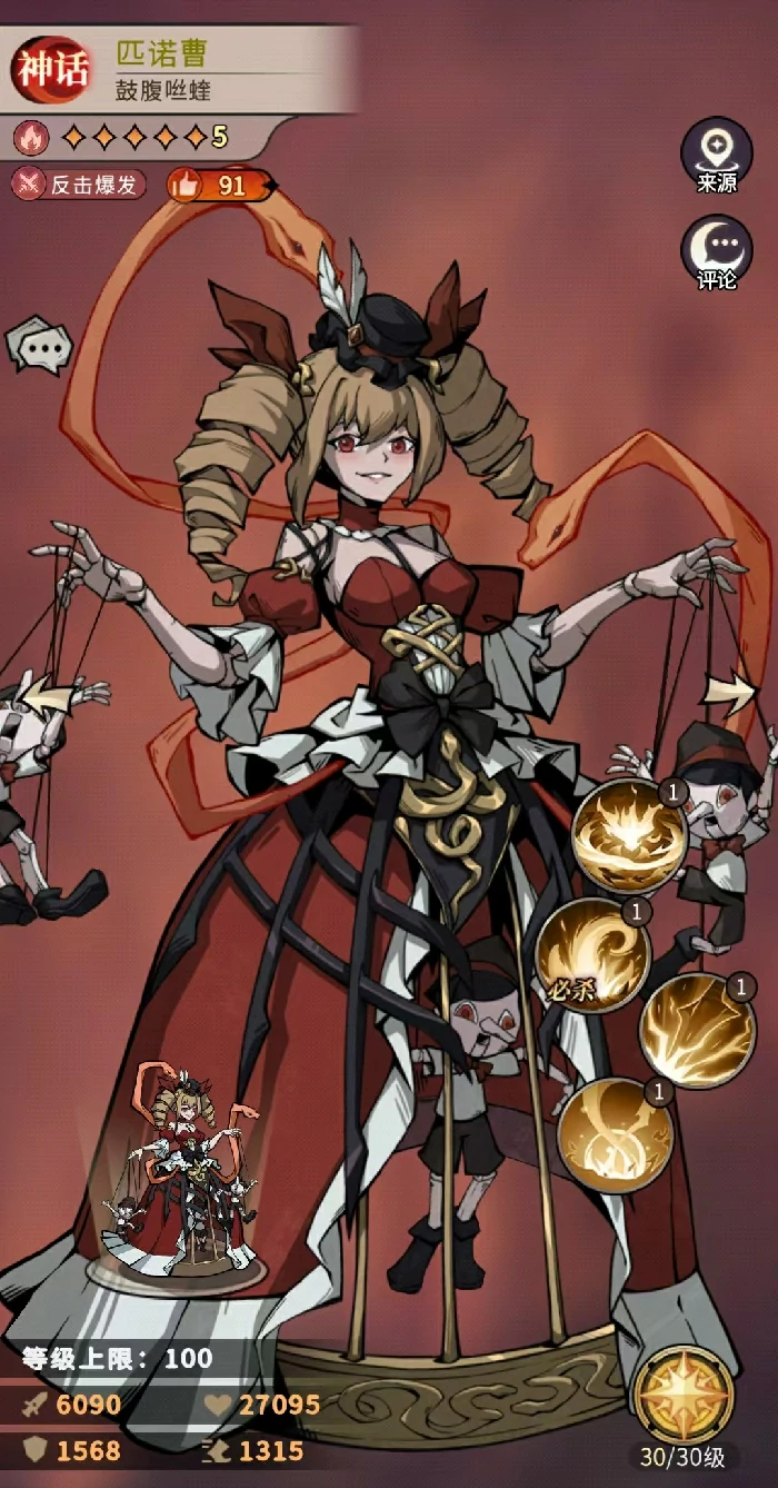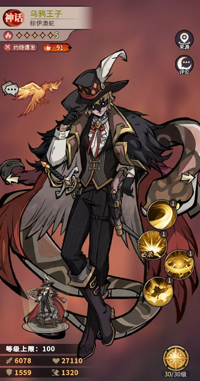 他的三技能是被动加成效果,能同时提升攻击、生命和暴击三项基础属性;四技能会在他行动前自动触发,根据己方战场上阵亡的友军数量提供攻击加成,最多能给到30%,每阵亡1名友军就能叠加1层,上限是5层。由此可见,乌鸦王子不只是靠单点爆发打伤害,而是靠高频挂灼烧、叠多层伤害再配合团队联动,形成一套能持续压制的输出循环。