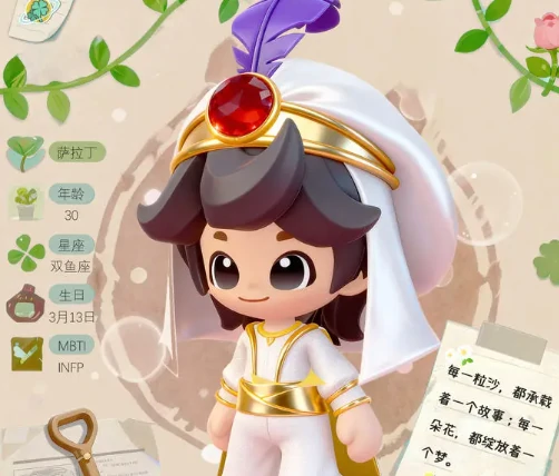 玩家第一次和他对话,就会被他温和的语气打动。商店门口镌刻的那句话,恰好是他人生态度的真实写照。萨拉丁出生于3月13日,是双鱼座,性格属于调停者型,浑身上下透着儒雅气质,说话轻声细语,但每一句都能说到人心里去。谁能想到,这个守着小店的植物爱好者,有着这般令人惊叹的履历:他出身阿拉伯皇室,从小享受着顶级教育资源,之后又远赴欧洲深造,最终取得了植物学博士学位。
