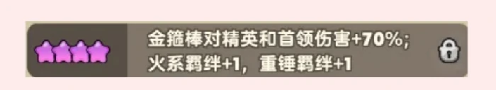 升星带来的不只是属性上涨,关键是特定星级会触发技能的质变强化。拿火系的金箍棒来说,它就是很有代表性的例子:升到3星时,会获得技能特性加成,虽然提升不算特别突出,但清怪速度能感觉到有明显加快;真正的质变节点在6星,这时候神器会解锁专属技能牌,金箍棒的技能牌是力大无穷,效果是释放金箍棒技能时,会额外再触发一次,虽然单次伤害降低20%,但相当于多了一轮输出,整体收益非常可观。