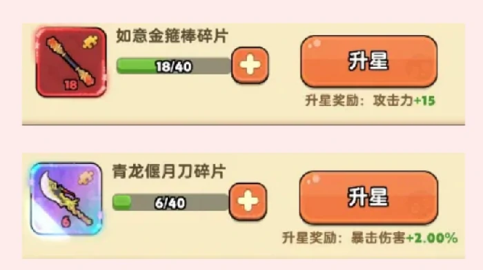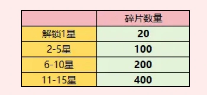 先给大家理清楚升星的碎片消耗:神器从0星起步,解锁1星需要20个碎片,这个消耗不算高;2星到5星阶段总计要100个碎片,平均每星约25个;6星到10星的消耗就明显提升了,拉满这个区间需要200个碎片;11星到15星的消耗更是翻倍,要400个碎片。算下来,把一个神器升到15星满级,总共得备齐720个碎片。这个数量不算少,所以前期碎片的分配一定要有规划,绝对不能乱花。