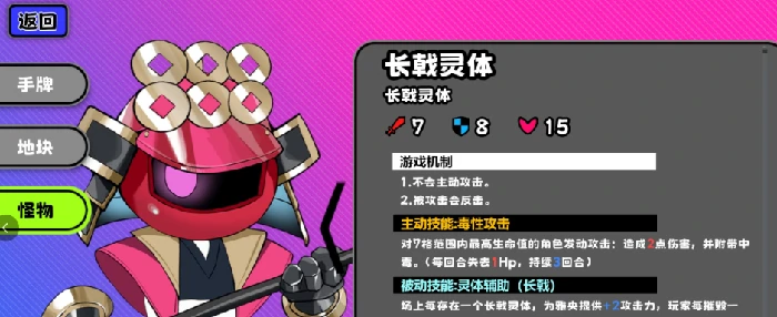 小怪的处理也有不少细节要注意。冰冷蓝灵初始5攻0防,刀剑灵体初始5攻2防,等对应事件结束后,二者会分别强化为9攻4防、9攻6防。这两种怪都会主动追击路径上的第一个玩家,其中冰冷蓝灵还会施加诅咒效果,不过诅咒可以直接用防御牌抵消,要是手里没防御牌,尽量别和它接触。队伍站位必须分散,绝对不能扎堆,否则很容易被群体伤害一波团灭。狂躁红灵初始6攻6防,强化后10攻10防,它会直线冲刺三格,碰到第一个玩家就会自爆,爆炸范围内三格的所有玩家都会中毒。长戟灵体初始7攻8防,强化后11攻12防,它会锁定全场血量最高的玩家,在七格范围内造成2点伤害并附带中毒。对付这两个怪没有特别捷径,主要得提前预判移动路线、保持安全距离,利用地形卡好它们的进场时机。