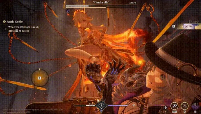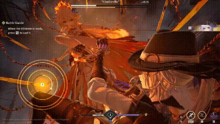 战斗初始阶段,灰姑娘会骑乘火焰战马霸气登场,拥有高速冲锋和范围火属性伤害能力。她登场瞬间,地面会同步浮现两道同心圆光效,这是关键的预警信号。此时玩家无需过度规避——该阶段的火焰仅为视觉特效,不会造成实际伤害,正好借此窗口迅速贴近展开近身输出,抢占先手优势。