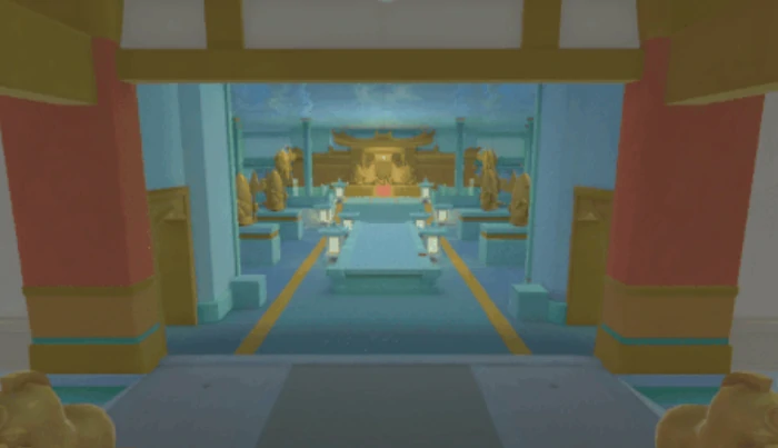 龙宫主殿作为核心建筑群,采用了立体垂直空间设计:底层王座室用金箔纹路和巨型珊瑚柱打造出威严庄重的氛围;中层翡翠殿以半透明青玉穹顶与流动水幕构成视觉核心;顶层则是最终挑战区域龙王试炼场,在这里玩家将遭遇高难度BOSS战,非常考验队伍的协同配合与资源分配能力。