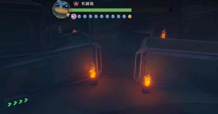 机器猫并非传统的站桩型Boss,这场战斗的核心在于和环境互动。战斗场地的外围设有三个可互动的控制装置,分别标记着A、B、C,还有明显的高亮提示,很容易辨认。整场战斗严格划分为三个阶段,每个阶段都得按顺序完成「破坏指定控制装置→绕到Boss背后击碎对应背板」的操作。只有完成前一步的操作,后续环节才会解锁,否则背板会一直处于无法击破的状态。