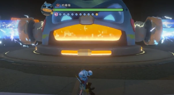 具体的操作流程是这样的:进入场地后,先优先找到并摧毁标记为A的控制装置;接着快速移动到Boss的正后方,这时候三块防护背板里会有一块短暂显现出来,集中火力把它击碎;完成这一步后,B装置的保护状态会解除,立刻去摧毁B装置,再回身攻击第二块背板;按照同样的逻辑,摧毁C装置后,最后一块背板会显现,击碎之后机器猫背部的能量核心就完全暴露出来,战斗进入最终阶段。这时候所有攻击都会恢复正常的伤害判定,玩家可以全力输出快速结束战斗。