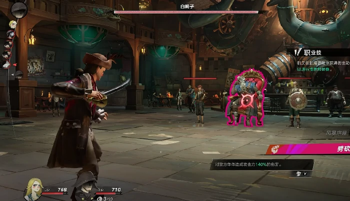 首道关卡设置在酒馆内部,需击败盘踞于此的BOSS。该敌人不仅封锁了航道,还会对主角发起带有威胁性的对话。建议组建由三名航海员构成的队伍,战斗过程中优先清理其召唤的小怪。主输出角色可使用“劈砍”技能强化单体爆发伤害,需注意技能存在冷却机制,首次释放后应预留第二次用于最终阶段的BOSS战。