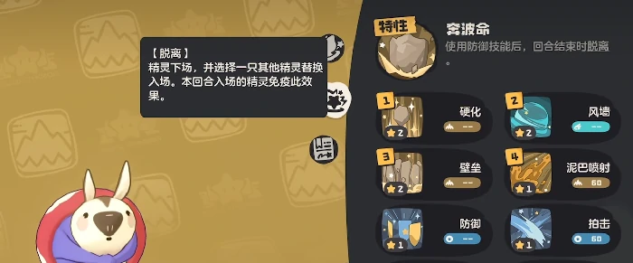 琉璃水母负责扩大中毒覆盖范围,通过技能联动进一步提升全场毒印的密度。铺垫完成后,可以切换回裘卡进行印记的重置与补充,最后由厉毒修萝完成爆发清场。奔波鼠是防御衔接位,它有个实用特性:成功使用防御类技能后,能免疫攻击类技能。也就是说,当敌方使用倾泻这类技能命中它的防御动作时,不会触发印记清除效果,这样就能保障我方毒印记持续存在。所以要给它配置风墙技能,用来应对敌方的进攻节奏,释放防御技能后就可以安全退场了。